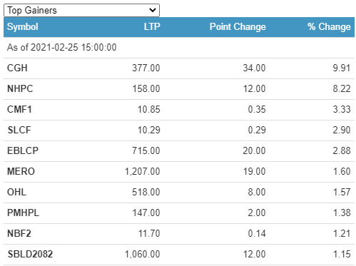 Chandragiri Hills Limited (CGH) has technically hit the 10% positive circuit today. Meanwhile, Sunrise First Mutual Fund (SFMF) has lost the most 6.84%, followed by Shree Investment Finance Company Limited (SIFC) which lost 5.53%.
