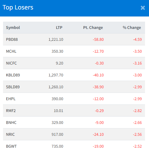 Meanwhile, 10% Prime Debenture 2088 (PBD88) recorded the Highest fall, falling by 4.59%, the last traded price of the company was Rs. 1,221.10