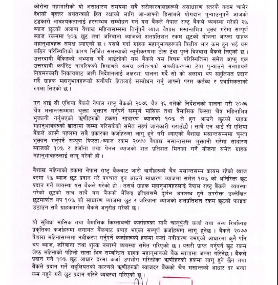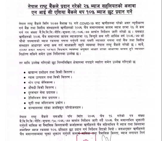 NIC ASIA Bank to provide 2% interest rebate as per NRB directives and further 10% rebate on interest amount and 100% on penal charges