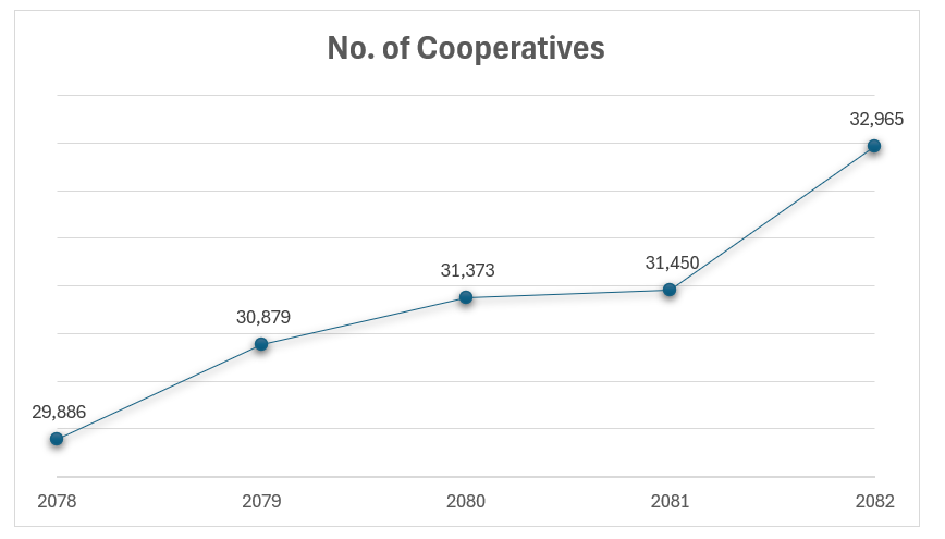 Below is a five year overview (B.S. 2078 to 2082) of the cooperative sector: