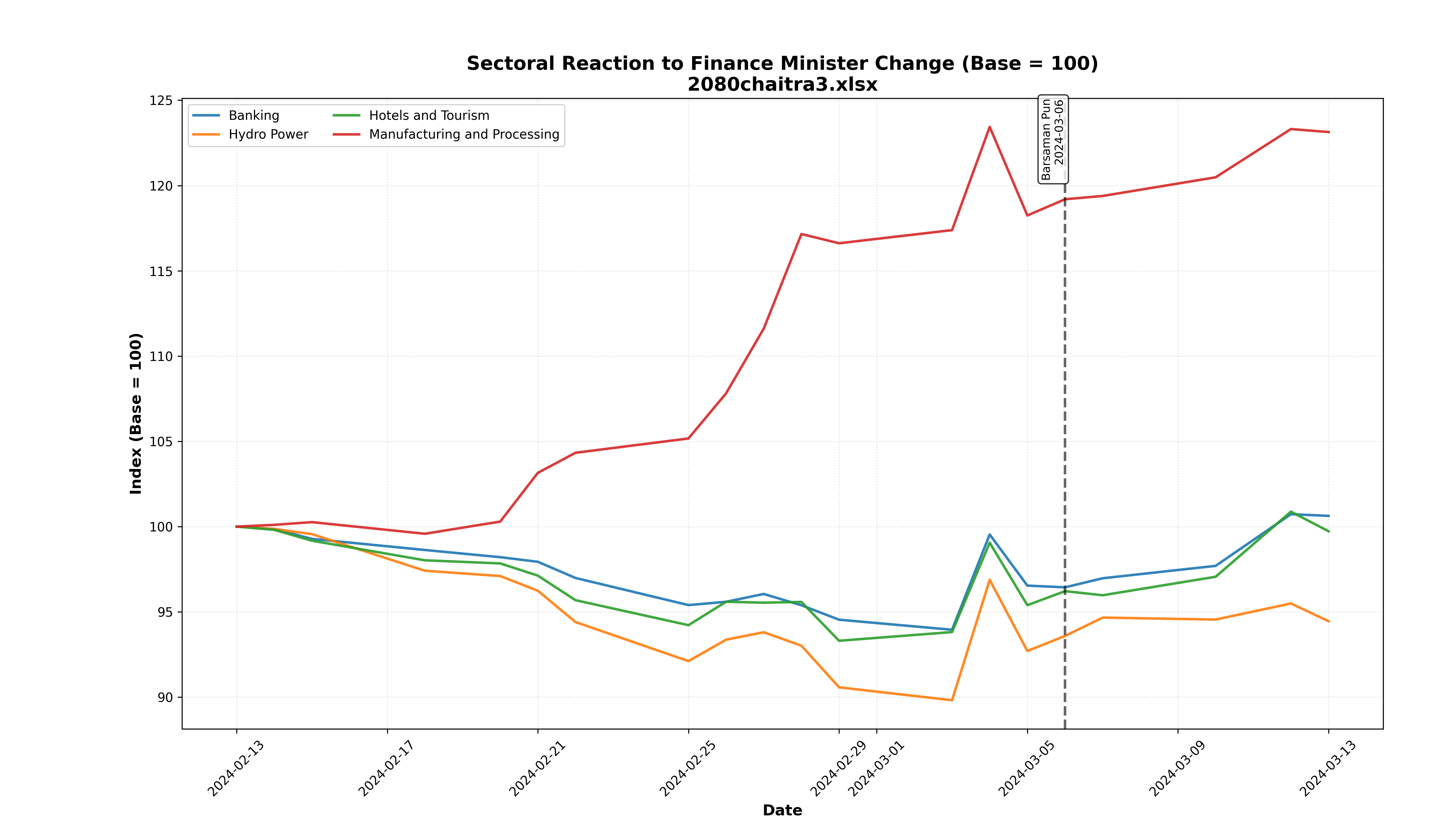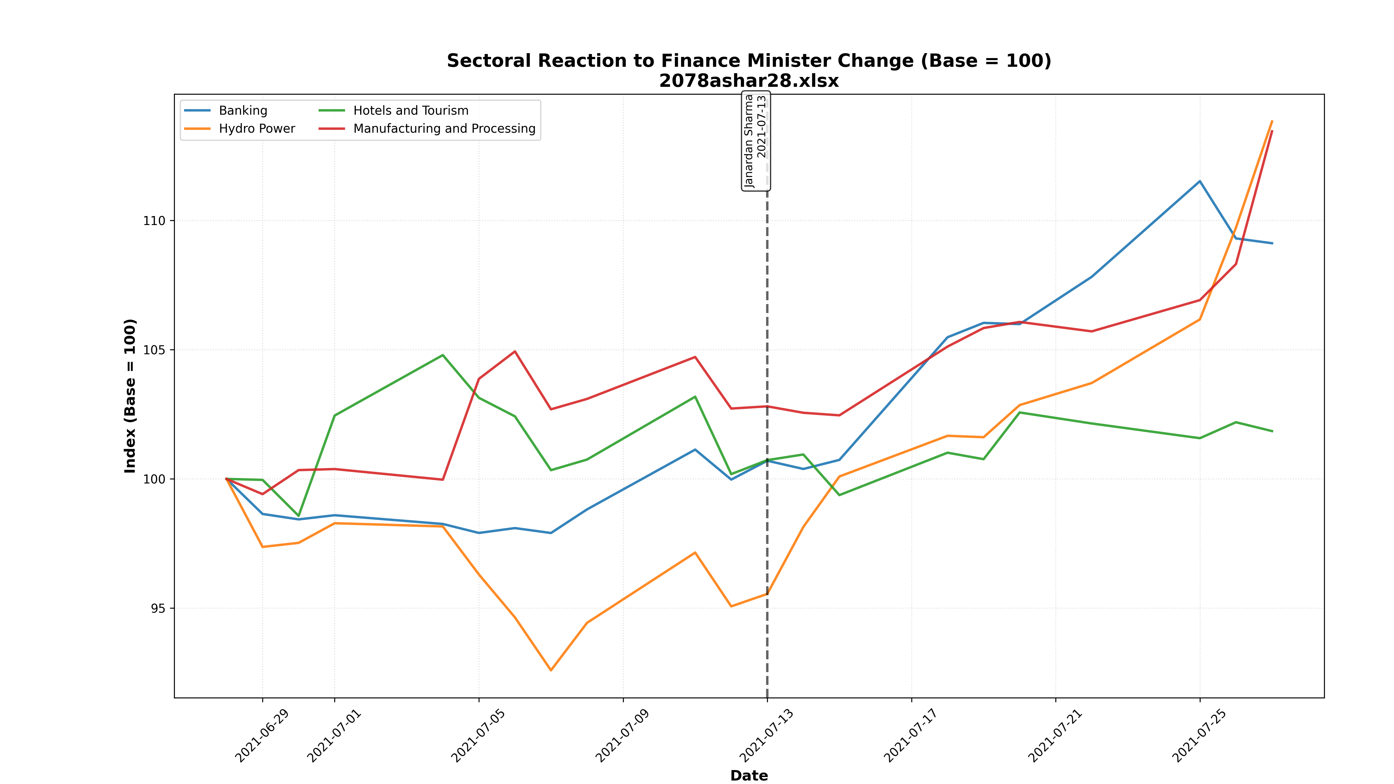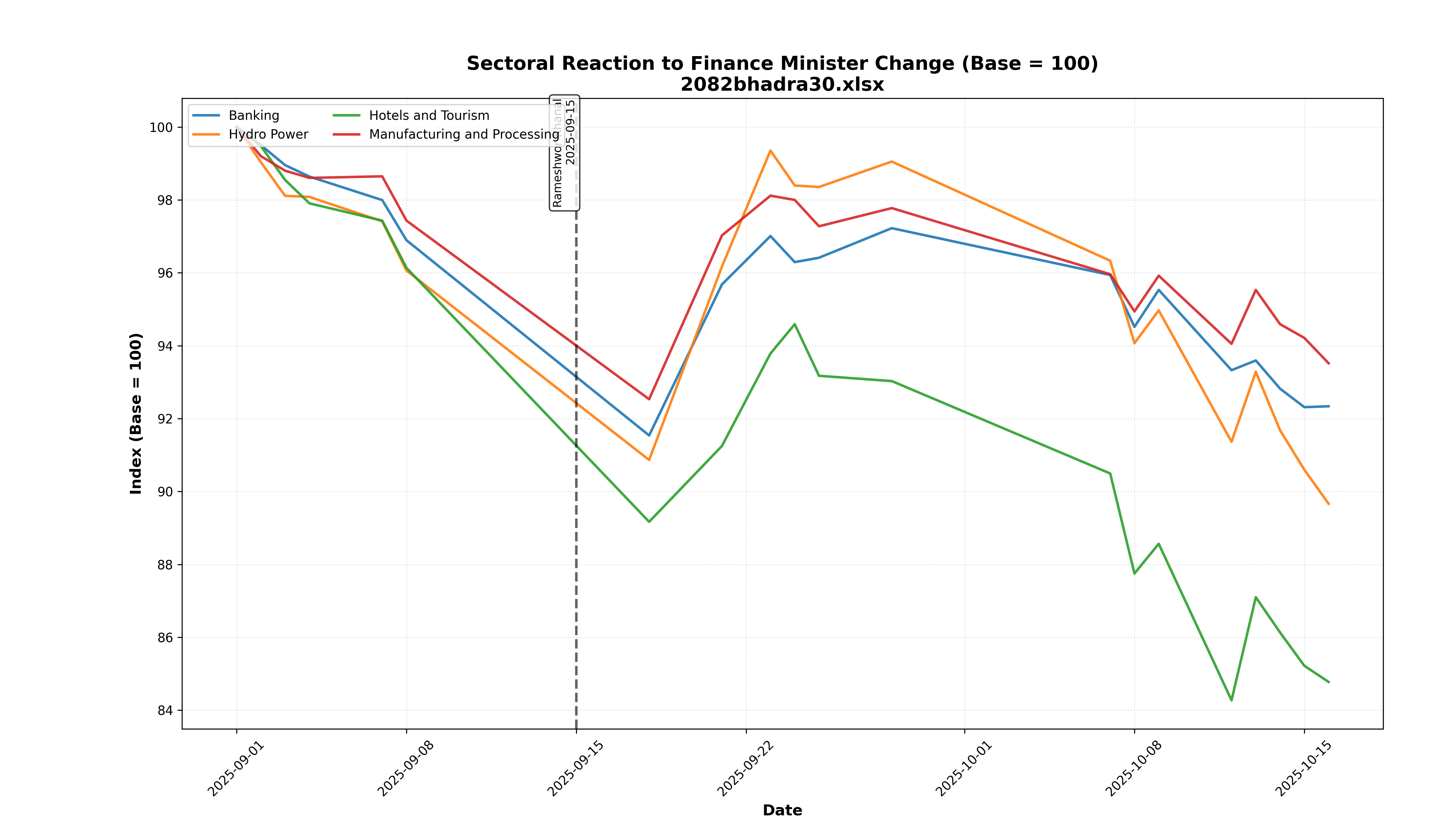 - Key Finding: This was the most bearish reaction. Hotels/Tourism and Hydro Power were the hardest hit, dropping to ~86 index points.