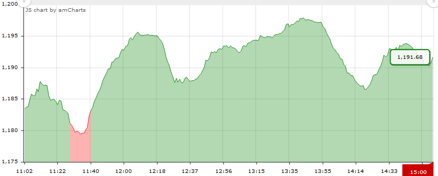 The market today was in the green zone for most part of the day, reaching a high of 1198 points. The benchmark index gained 0.79% or 9.32 points and closed at 1191.68 points. The turnover today was of massive Rs.90.69 Crore achieved from trade of 2,951,478 units of shares traded through 11,360 transactions trading scrips of 170 listed companies in the process.