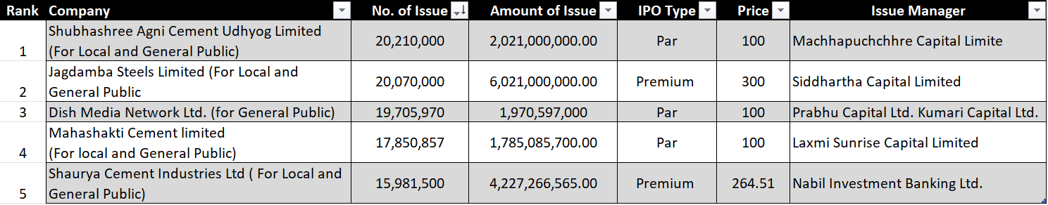 Following are the TOP 5 Companies ranked based on Number of Share Issue: