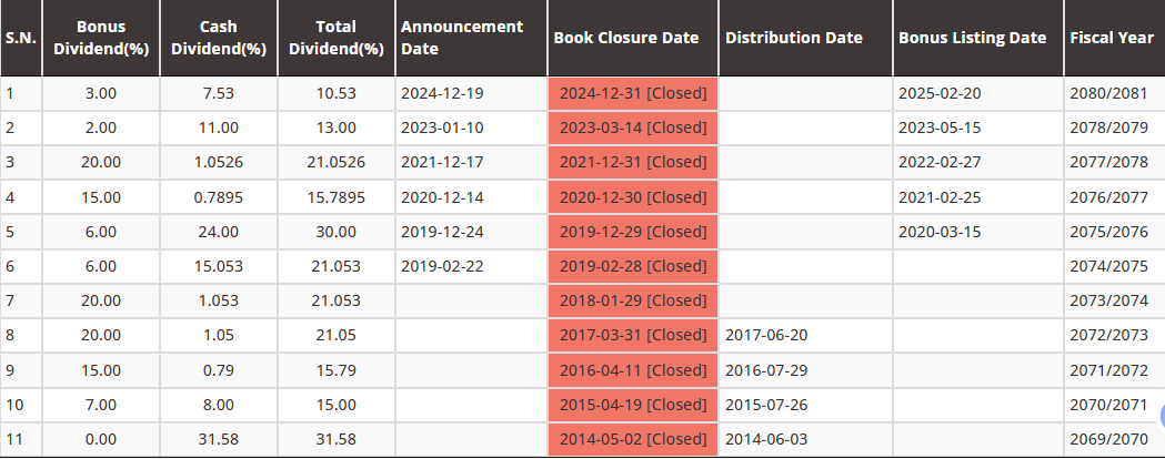 Note that this dividend will be distributed only after approval from Nepal Rastra Bank and endorsement by the company's upcoming AGM.