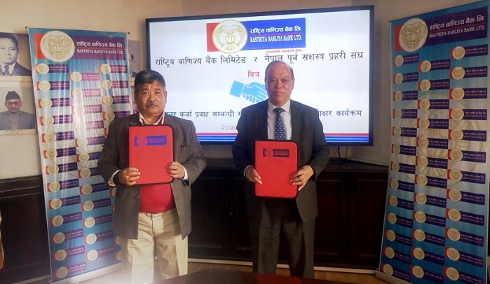 Rastriya Banijaya Bank has inked a pension loan agreement with Ex APF Association to provide a pention loan with special facilities to the members of the association.