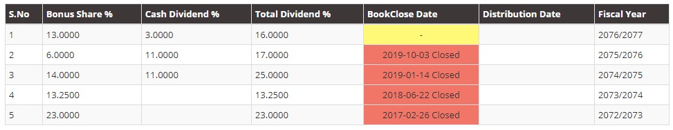 Bank of Kathmandu Limited (BOKL) has proposed a 16% dividend for the fiscal year 2076/77.
