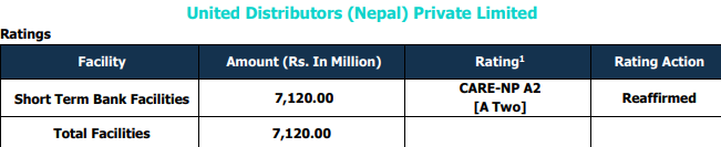 Care Rating Nepal Has Assigned A2 Ratings To Rs 712 Crore Loan of United Distributors Nepal Pvt Ltd