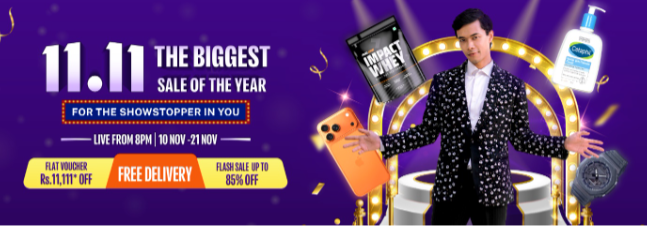 Daraz Nepal is set to launch its biggest annual shopping festival, Daraz 11.11 – “For the Showstopper in You”, from November 10 to November 21, 2025. The sale offers massive discounts, Flash Sales up to 85%, Mega Deals up to 75%, and Hot Deals up to 70%, along with exclusive vouchers, themed sale days, and free delivery on select orders.