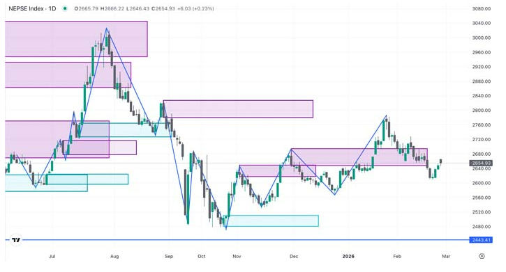 The 2780-2800 level serves as a strong resistance. During the first three months of 2026, sellers became increasingly active whenever the market touched the 2800 level, indicating that the point acts as a supply zone where investors are booking profits.