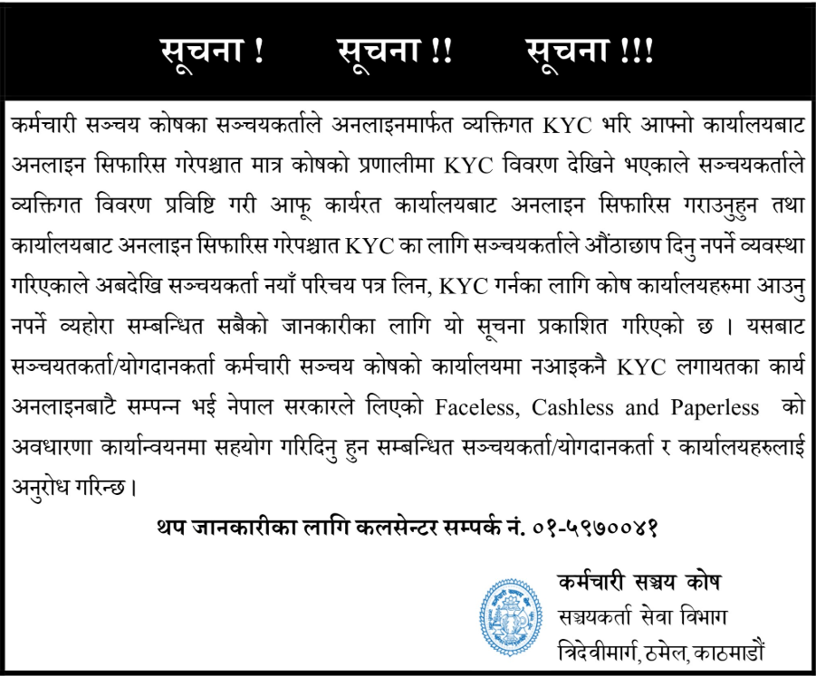 The EPF has urged all members, contributors, and offices to adopt the online process in support of the Nepal Government's "Faceless, Cashless and Paperless" initiative.