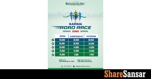 Garima Bikas Bank Limited is organizing the second edition of the Garima Road Race 2082 on Mangsir 6, 2082 B.S., to celebrate its 19th anniversary. Held under the slogan “Sports for Health,” the event promotes fitness and community engagement. Following last year’s successful race with 650 participants, this year’s edition expects around 1,000 runners and introduces a new Veteran category for women aged 45+ and men aged 50+.