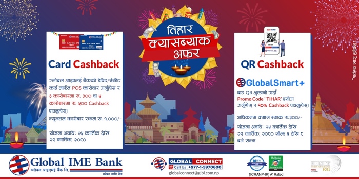 Global IME Bank concludes Tihar special cashback offer; provides upto Rs 500 as cashback for Tihar purchases of its customers