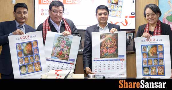 The calendar features Paubha artworks reflecting the heritage of the Newar community in the Kathmandu Valley. The bank has been promoting Nepali art and heritage through its annual calendars, previously featuring Mithila art, mandala paintings, repatriated artifacts, and traditional lifestyle images.