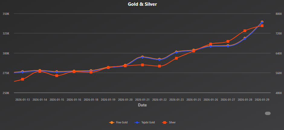 Gold and silver prices in Nepal have jumped to new all-time highs, extending their strong upward momentum in the domestic bullion market.