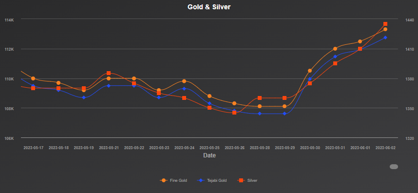 The price of gold hit an all-time high yesterday, rising to Rs. 111,950 for tejabi gold and Rs. 112,500 for fine gold. Read this to learn more about the fluctuations in gold prices: Why has Gold Gained Massive Rs. 3900 per Tola in Two Days in Nepal?