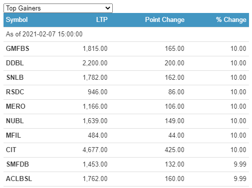 More than 30 companies have technically hit the 10% positive circuit today. Meanwhile, Nepal Finance Limited (NFS) lost the most 6.27%.