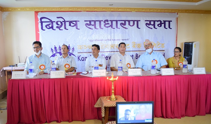 Kanchan Development Bank of Mahendranagar has concluded its SGM successfully under its chairman Mr. Shiv Singh Karki on Asad 21, 2077 which has approved the acquisition by NMB Bank in a share swap ratio of 100:85.
