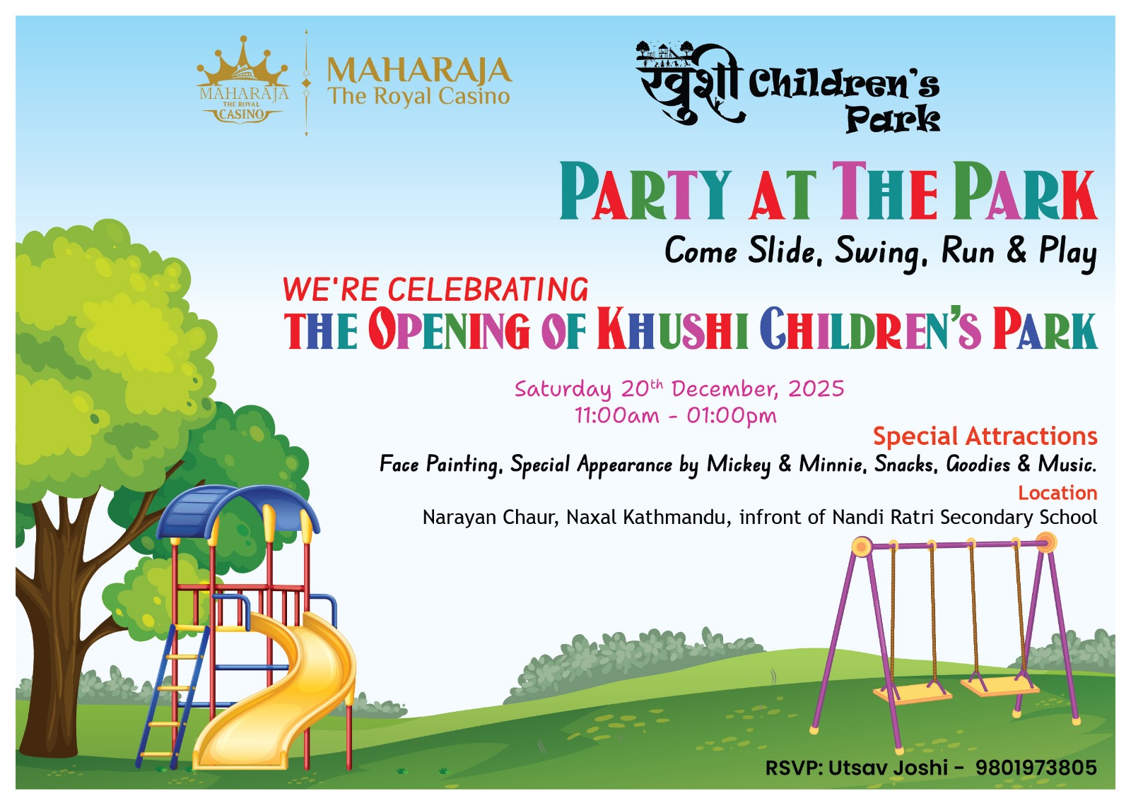 A new public space dedicated to children’s recreation and well-being, Khushi Children’s Park, has been inaugurated at Narayan Chaur, Naxal. Developed with an investment of approximately NPR 30 lakhs, the park offers a safe, green, and child-friendly environment at a time when open play areas in Kathmandu are becoming increasingly limited.