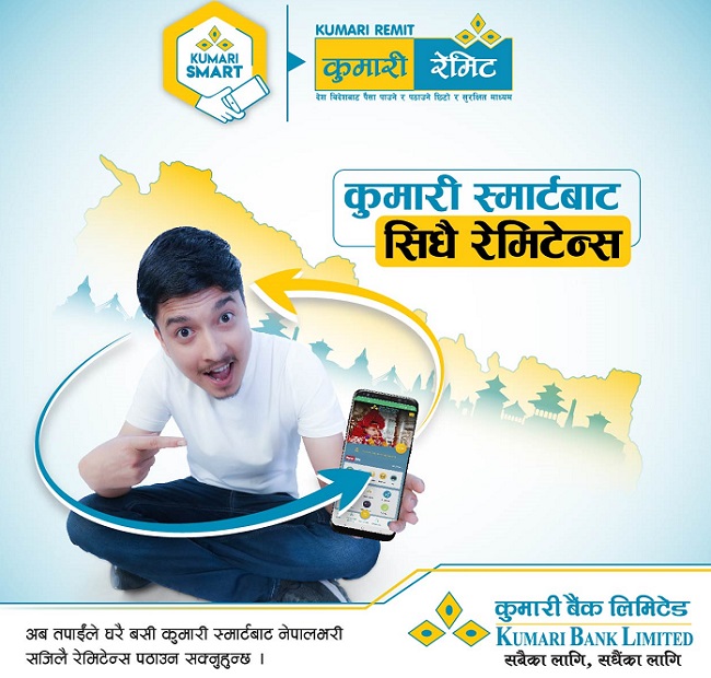 Kumari Bank has launched a domestic remittance service from its mobile app. Kumari Smart under which customers can disburse the remittance amount anywhere inside Nepal via the MoBanking service.