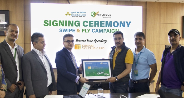 Kumari Bank and Yeti Airlines have signed an agreement to issue Kumari Sky Club cards for the customers of the bank and air travellers of Yeti Airlines.