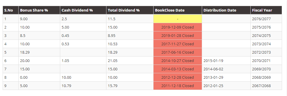 Note that this dividend will be distributed only after approval from Nepal Rastra Bank and endorsement by the company's upcoming AGM. As of writing, the bank's last day close stands at Rs. 288.