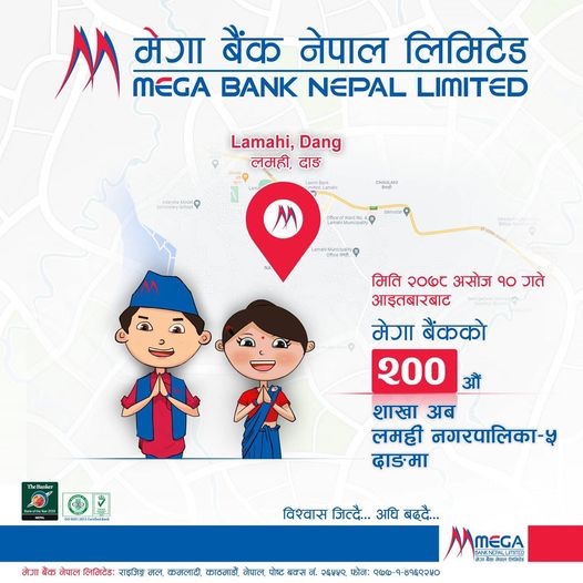 Mega Bank has brought into operation its new branch at Lamahi Nagarpalika-5 Lamahi of Dang on Aswin 10, 2078.