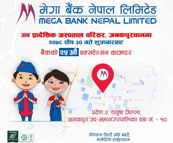 Mega Bank grows with 25th extension counter; banking access to benefit service seekers inside and around Janakpur provincial hospital