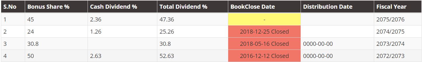 The dividend proposal has already been passed by Nepal Rastra Bank and is subject to approval from the upcoming AGM of the company.