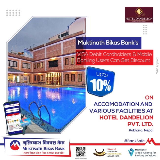 Muktinath Bikas Bank signs agreement with Dandelion Hotel; MoU to enable bank’s cardholders to receive special discount at Pokhara based hotel
