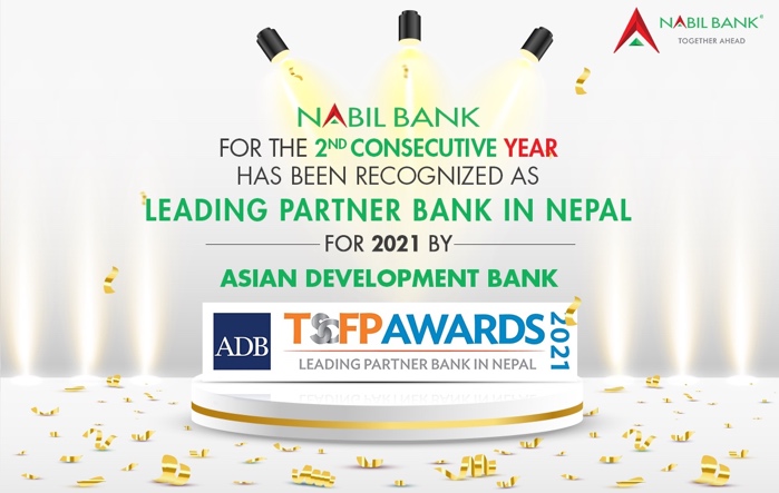 Nabil Bank Limited has been recognized as the Leading Partner Bank in Nepal for 2021 by Asian Development Bank - Trade & Supply Chain Finance Program (TSCFP). This is the second time in a row for Nabil Bank to be awarded this award. ADB's TSCFP fills market gaps for trade finance by providing guarantees and loans to banks to support trade. Trade Finance Program empowers countries to meet Sustainable Development Goals by closing market gaps through guarantees and loans.