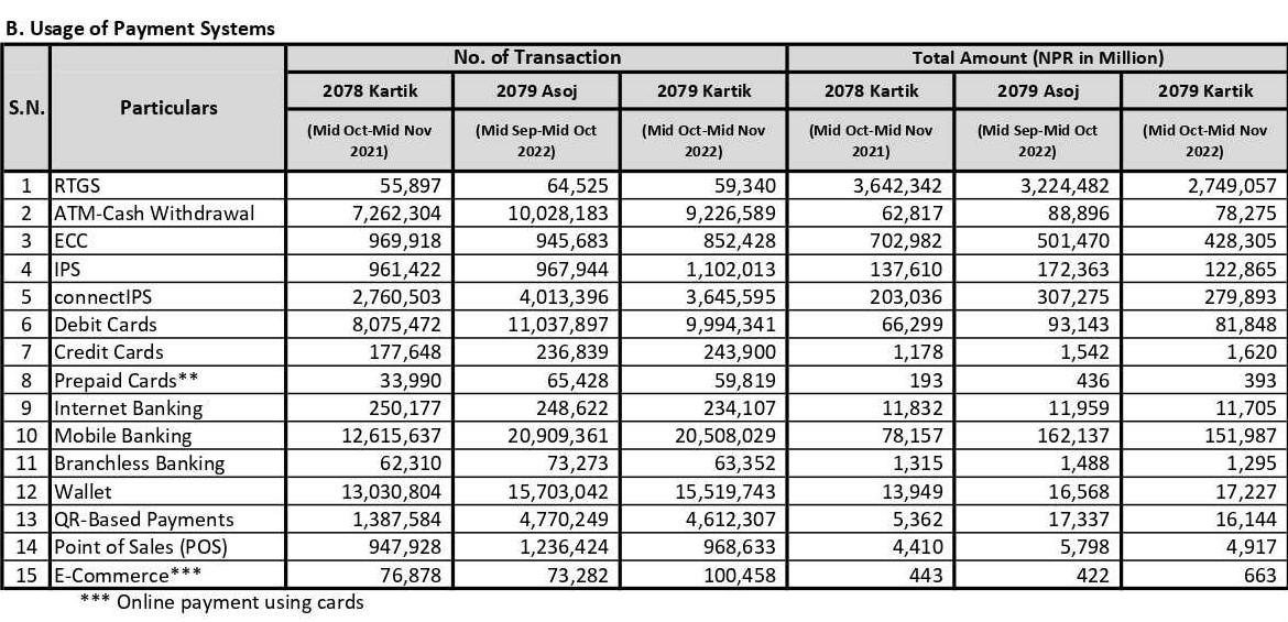 In a similar vein, the data reveals that there has been a notable incline in various payment methods, including ATM-Cashless withdrawal, IPS, ConnectIPS, and online shopping, among others.