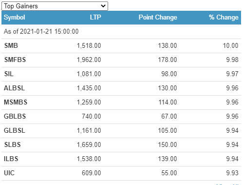 Meanwhile, Narayani Development Bank Limited (NABBC) lost the most 6.7%.