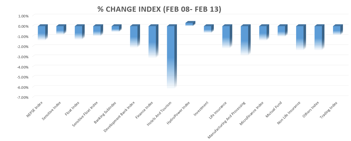 The NEPSE index decreased by 1.39% this week. Only one sector index is closed in the green.