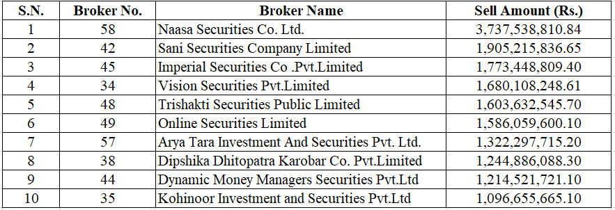 Naasa Securities Co. Limited (Broker No.- 58) was the top seller broker for this week. The brokerage firm has sold stocks worth Rs. 3.73 Arba.
