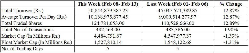 The highest intraday gain was 8.98 points on Thursday, with a turnover of Rs 11.10 Arba; however, the total turnover for the week stood at Rs 50.84 Arba.