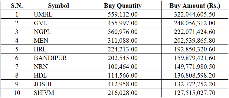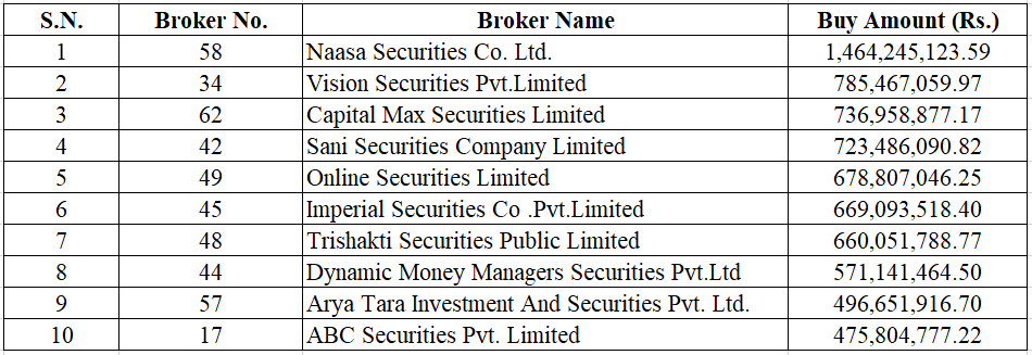 This week, Naasa Securities Co. Ltd. (Broker No. 58) was the top buying broker and purchased stocks worth Rs. 1.46 Arba.