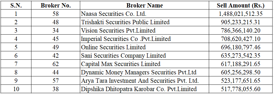 Naasa Securities Co. Limited (Broker No.- 58) was the top seller broker for this week. The brokerage firm has sold stocks worth Rs. 1.48 Arba.