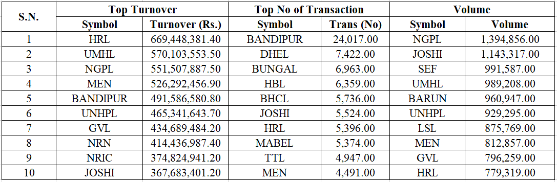 The highest intraday loss was 26.51 points on Sunday, with a turnover of Rs 7.08 Arba; however, the total turnover for the week stood at Rs 21.51 Arba. Over 4.82 Crore unit shares have been traded through 2,68,270 transactions this week. The current market capitalization of NEPSE is Rs. 4,417,804.57 million, i.e., Rs 44.17 Kharba.