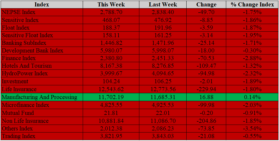 NEPSE index and Sub-indices performance: (Gain/ loss is based on the previous week's close)