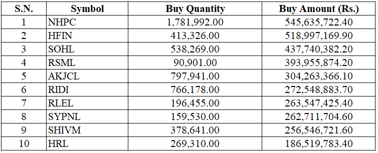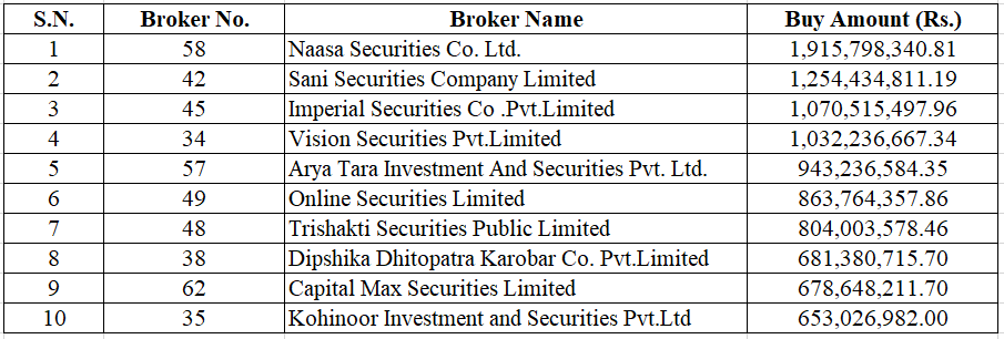 This week, Naasa Securities Co. Ltd. (Broker No. 58) was the top buying broker and purchased stocks worth Rs. 1.91 Arba.