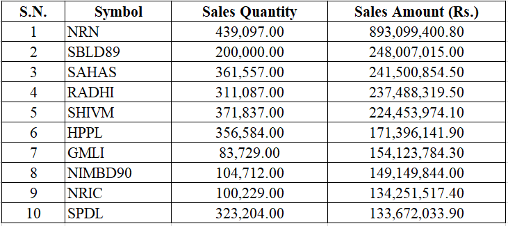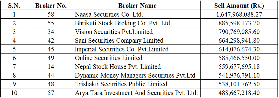 Naasa Securities Co. Limited (Broker No.- 58) was the top seller broker for this week. The brokerage firm has sold stocks worth Rs. 1.64 Arba.