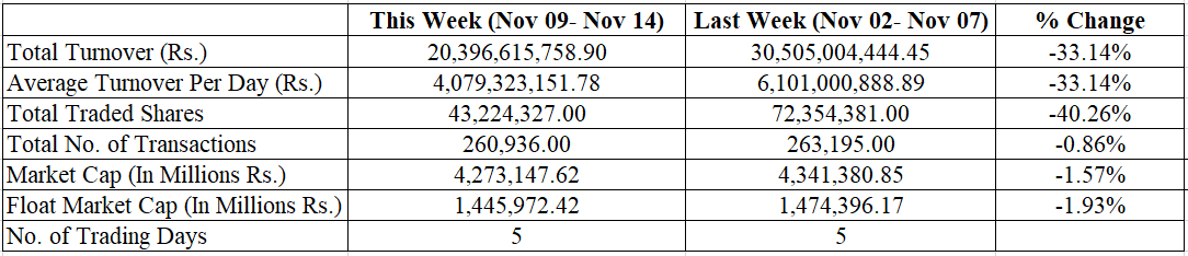 The highest intraday loss was 30.03 points on Sunday, with a turnover of Rs 4.90 Arba; however, the total turnover for the week stood at Rs 20.39 Arba.