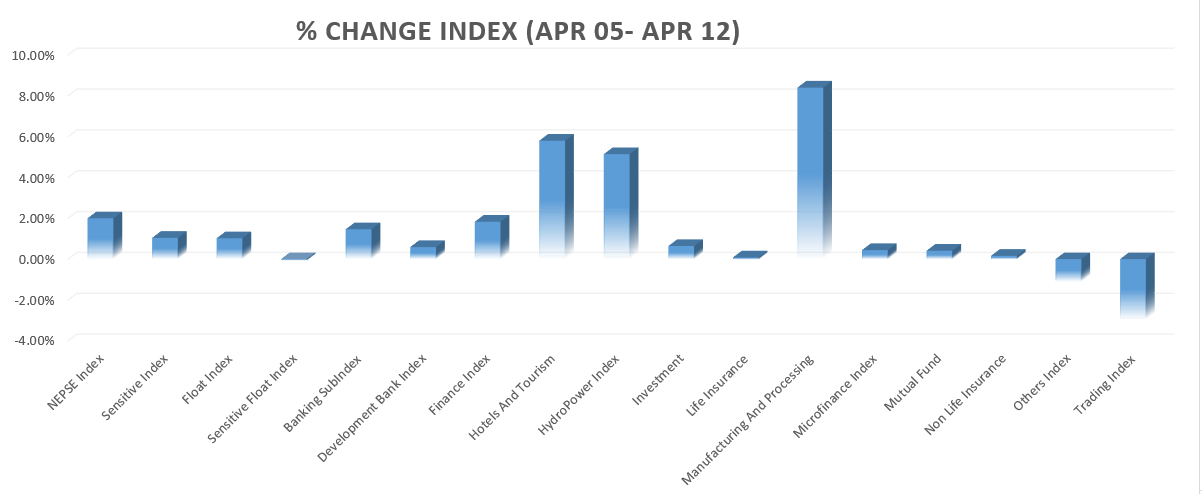 The NEPSE index increased by 2.00% this week. Only three sector indices are closed in the red.