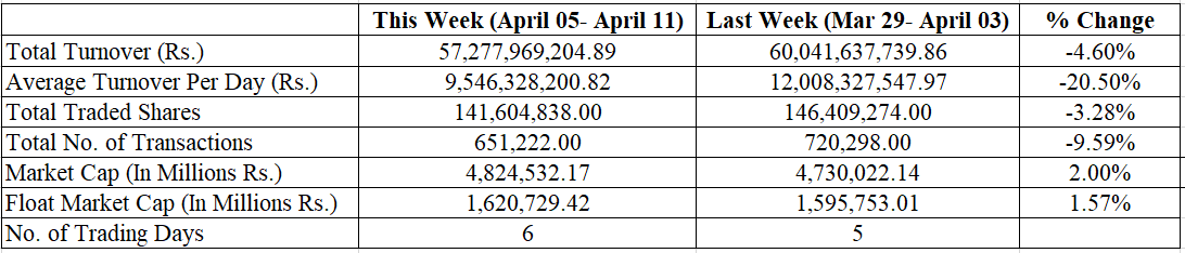 The highest intraday gain was 83.34 points on Monday, with a turnover of Rs 10.92 Arba; however, the total turnover for the week stood at Rs 57.27 Arba.