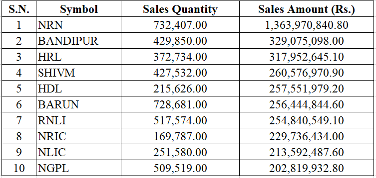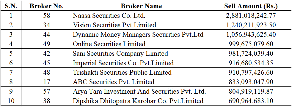 Naasa Securities Co. Limited (Broker No.- 58) was the top seller broker for this week. The brokerage firm has sold stocks worth Rs. 2.88 Arba.