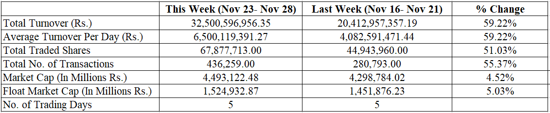 The highest intraday gain was 50.44 points on Monday, with a turnover of Rs 7.03 Arba; however, the total turnover for the week stood at Rs 32.50 Arba.