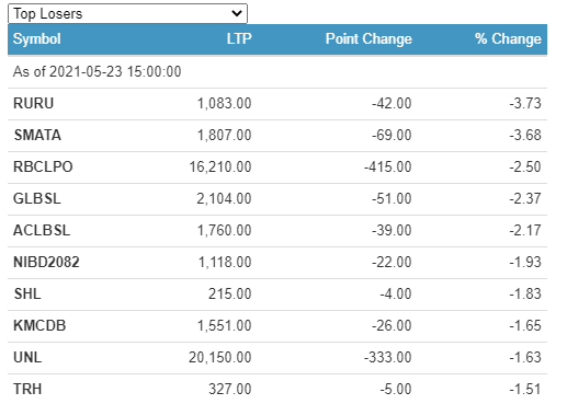 On the other side of things, Ru Ru Jalvidut Pariyojana Limited (RURU) lost the most 3.73%.