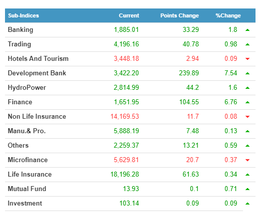 Three sectors lost while all others gained today. Development Banks gained an impressive 7.54% while Finance gained an equally magnificent 6.76%. In contrast, Microfinance lost the most 0.37%.