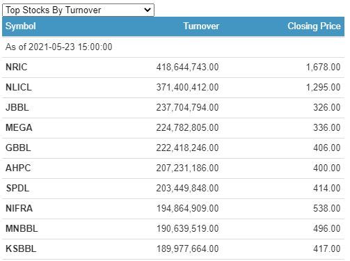 Nepal Reinsurance Company Limited (NRIC) has the highest individual scrip turnover of a little over Rs. 41.86 crores.