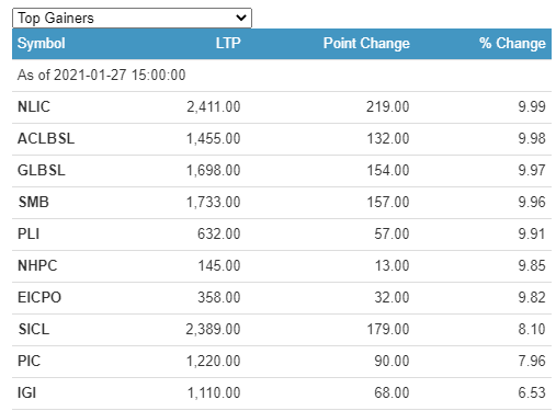 Meanwhile, Pokhara Finance Limited (PFL) lost the most 7.05%.